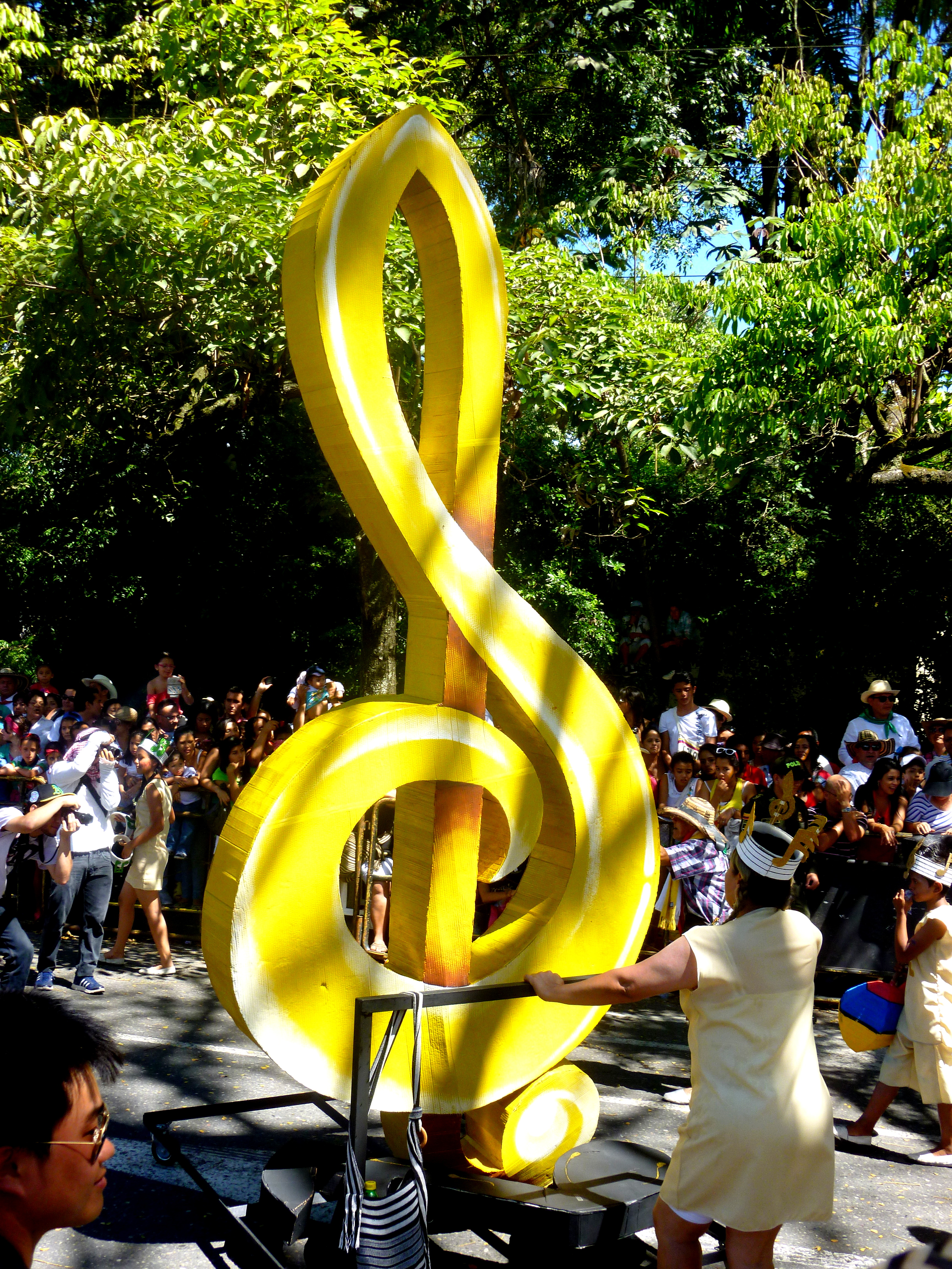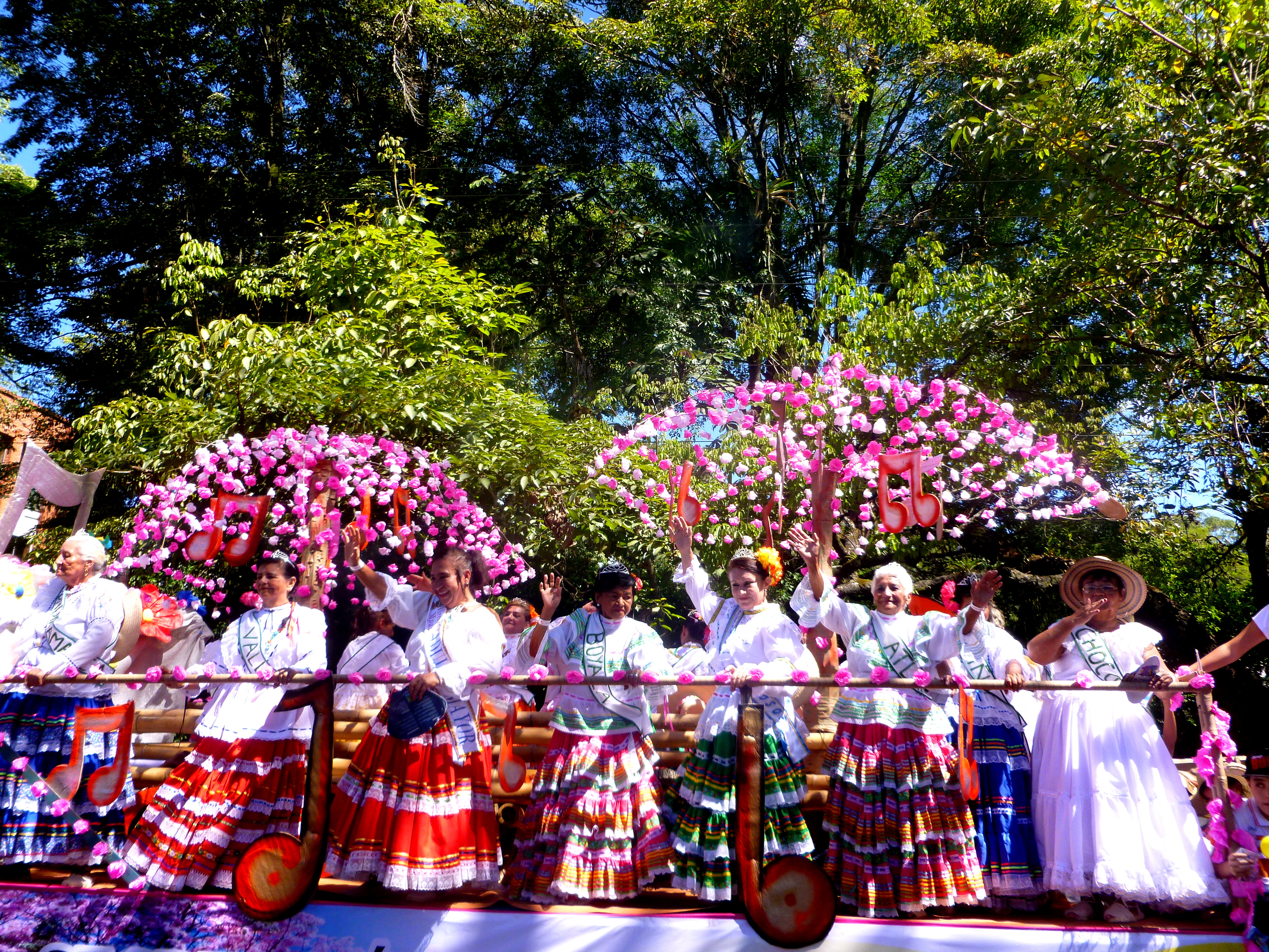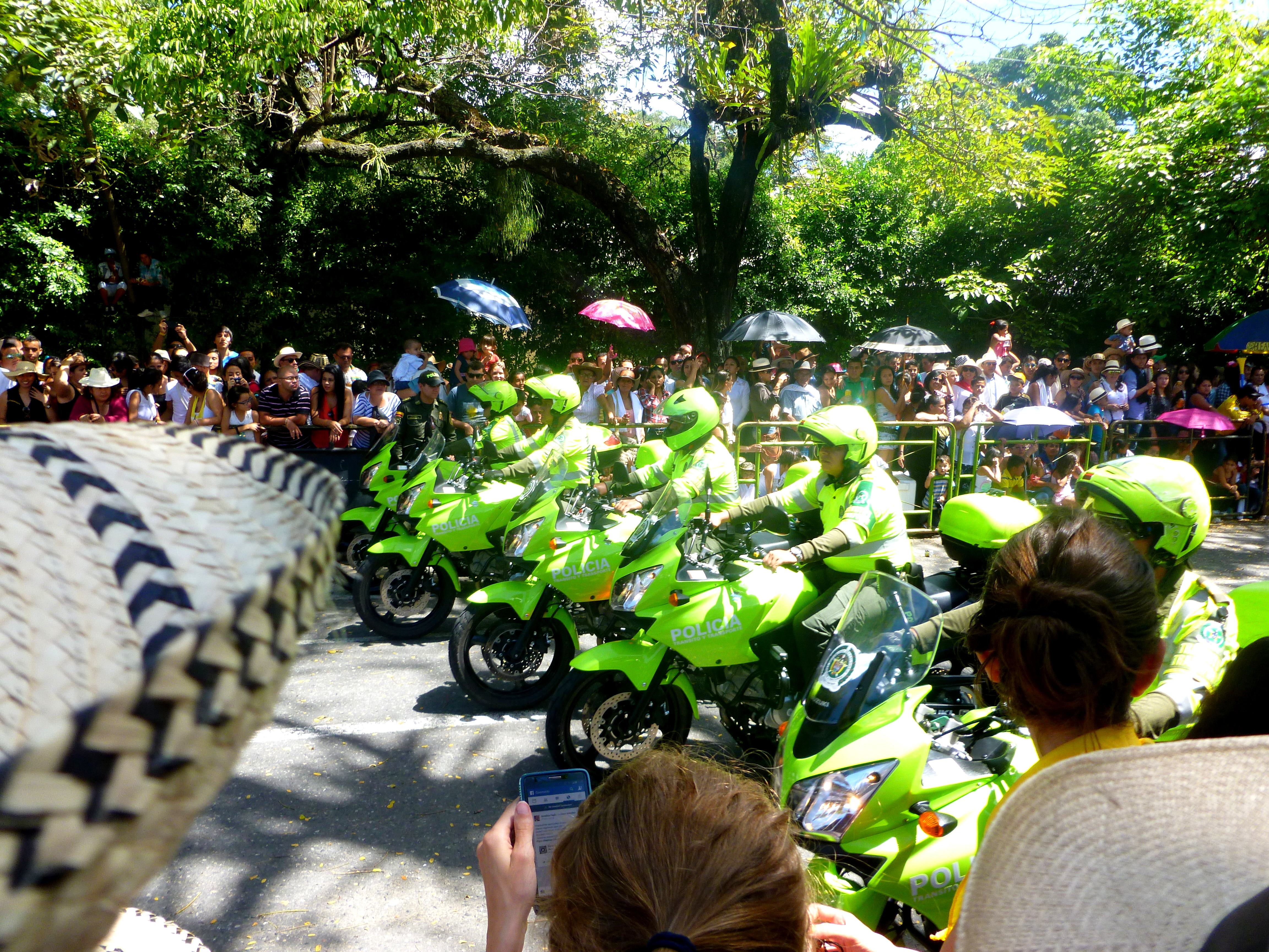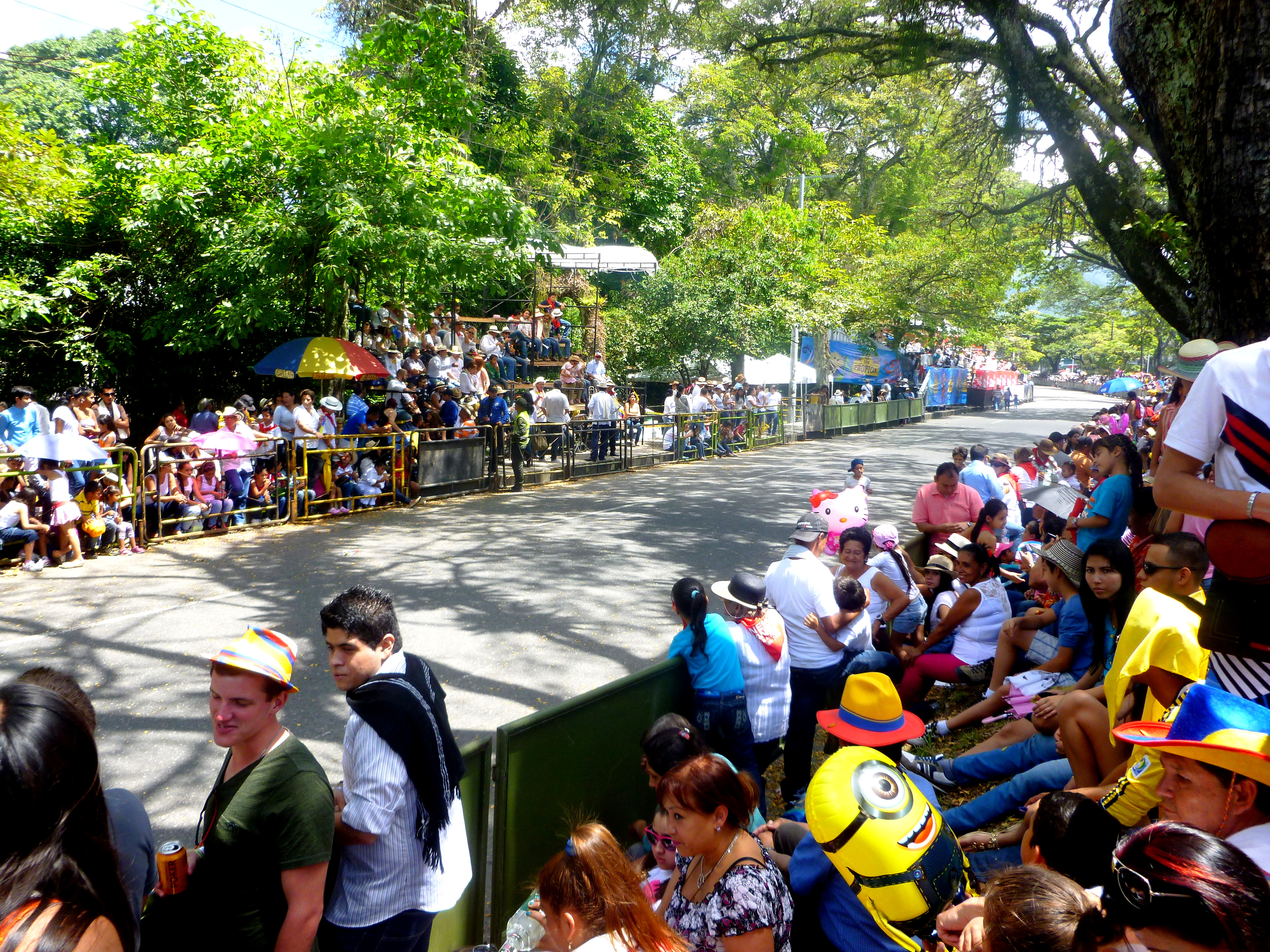 It was a very, very large parade. So large that my camera died halfway through (in its defense, I also forgot to charge it last night and it only got about an hour this morning). The parade was a lot like parades in the USA, with tons of people along streets and floats. A few differences: the “queens” and “princesses” and “Senoritas Colombia” and other pageant winners were dressed in tradition costume or bikini-style costume (think the movie Rio), and danced suggestively as they passed by. This is contrary to the straight-laced, Lilly Pulitzer Posture favored by my Etiquette Book and American society.