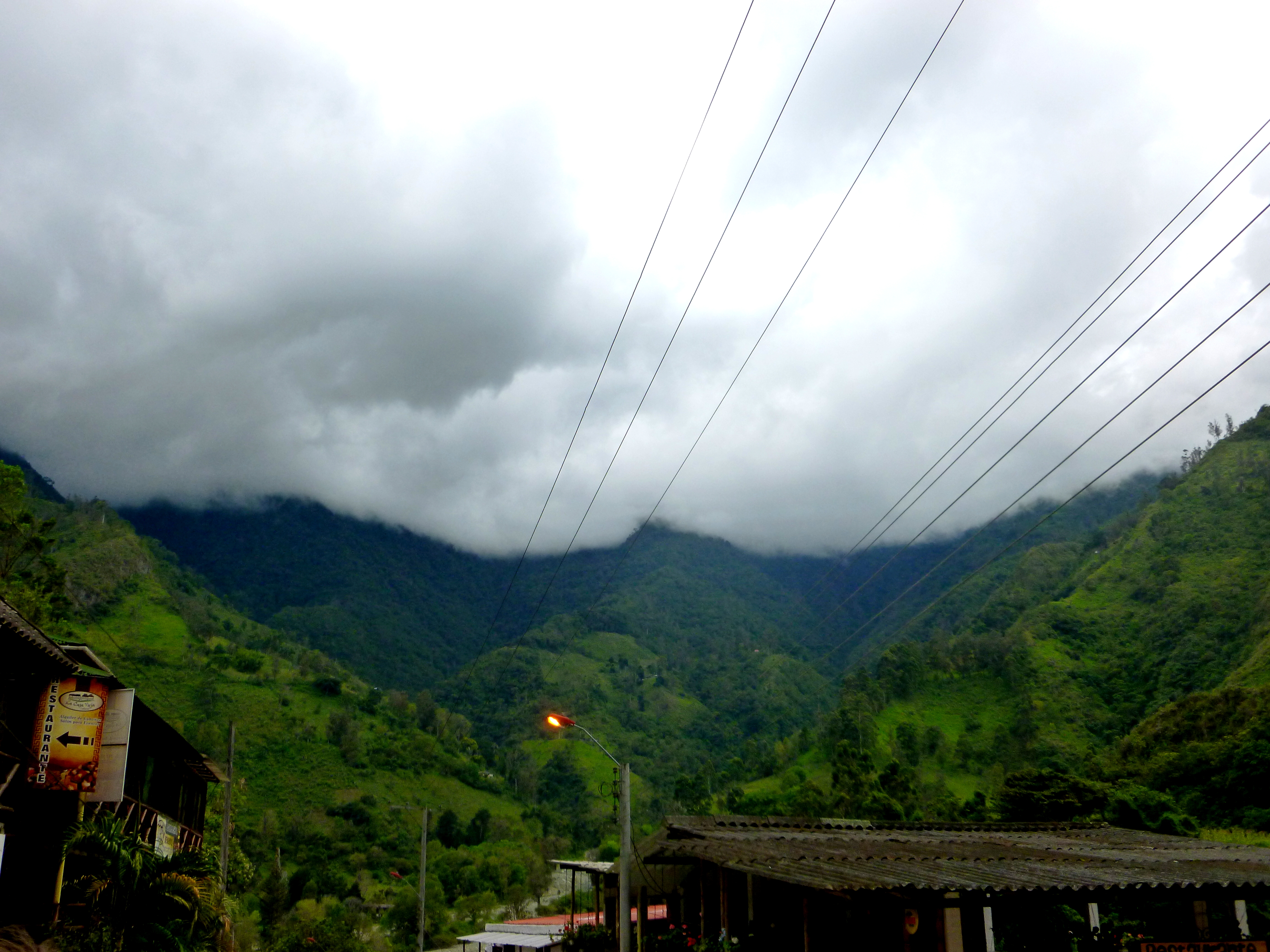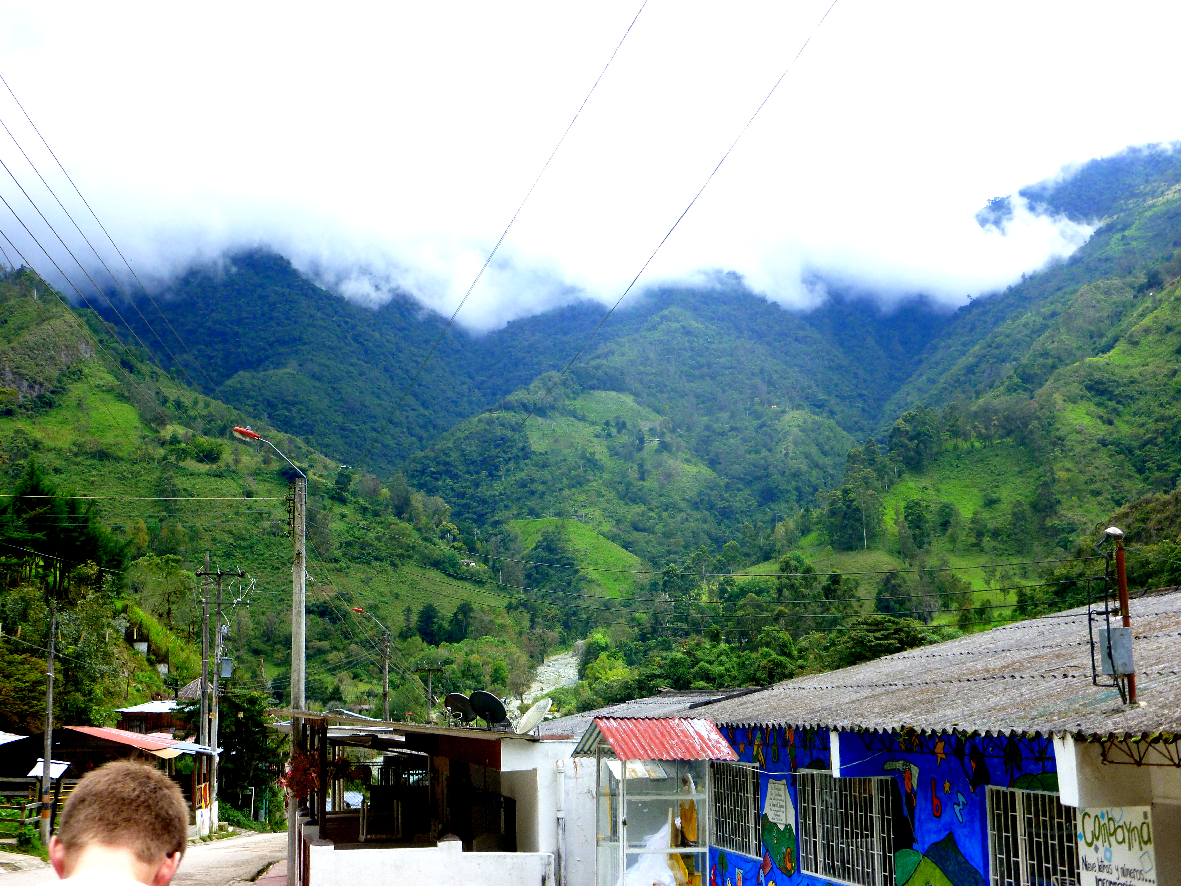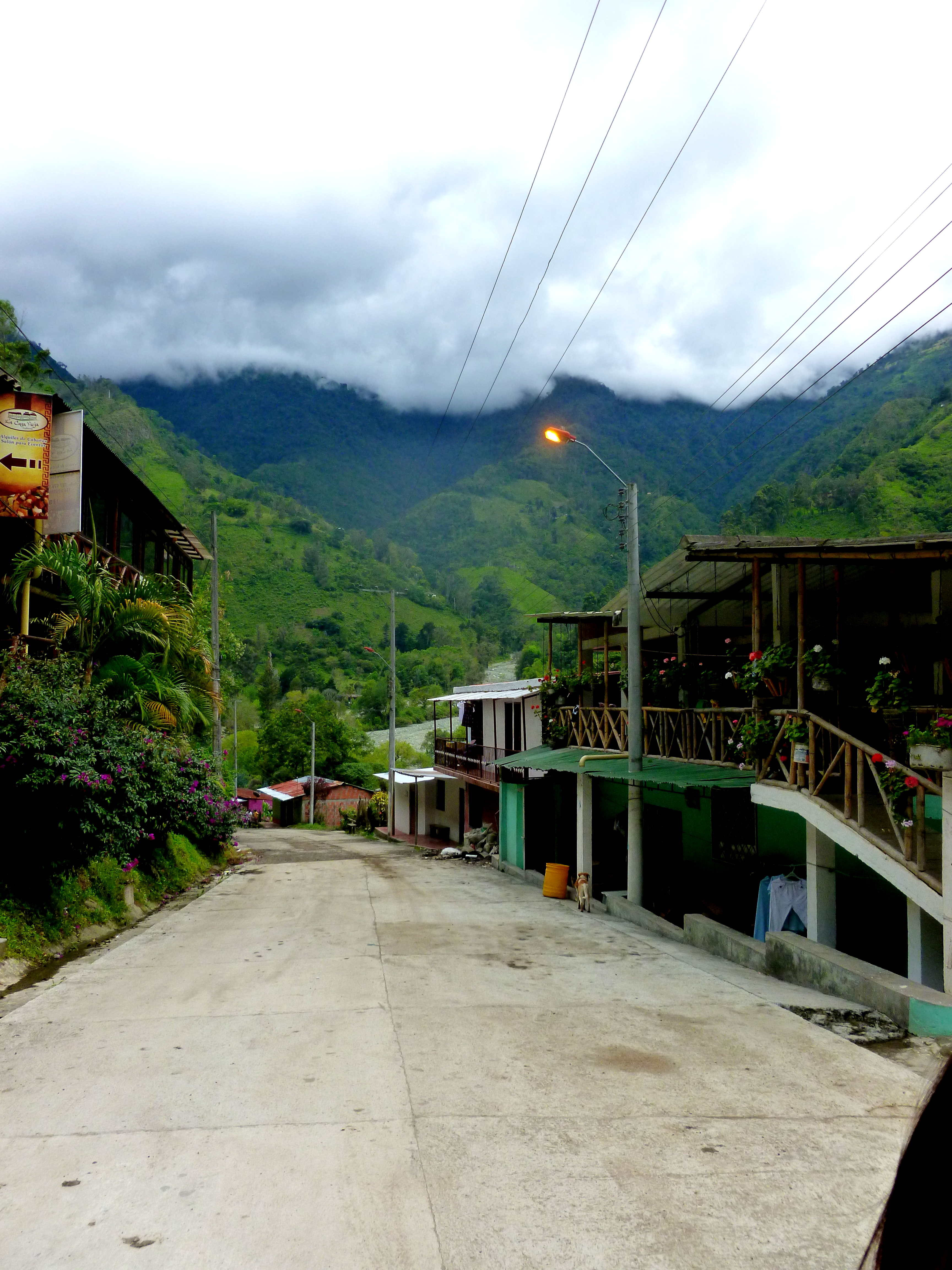 We walked up this road until we stopped at a small restaurant (that doubled as a house) and tried aguapanela. It’s a cane-sugar water in which you submerge slices of cheese. After these have melted, you eat the cheese and drink the water. It’s quite good and perfect for a mountainous area which becomes chilly- and reminds me almost of the butter-tea that is common in the areas of Nepal and the surrounding Himalayas.