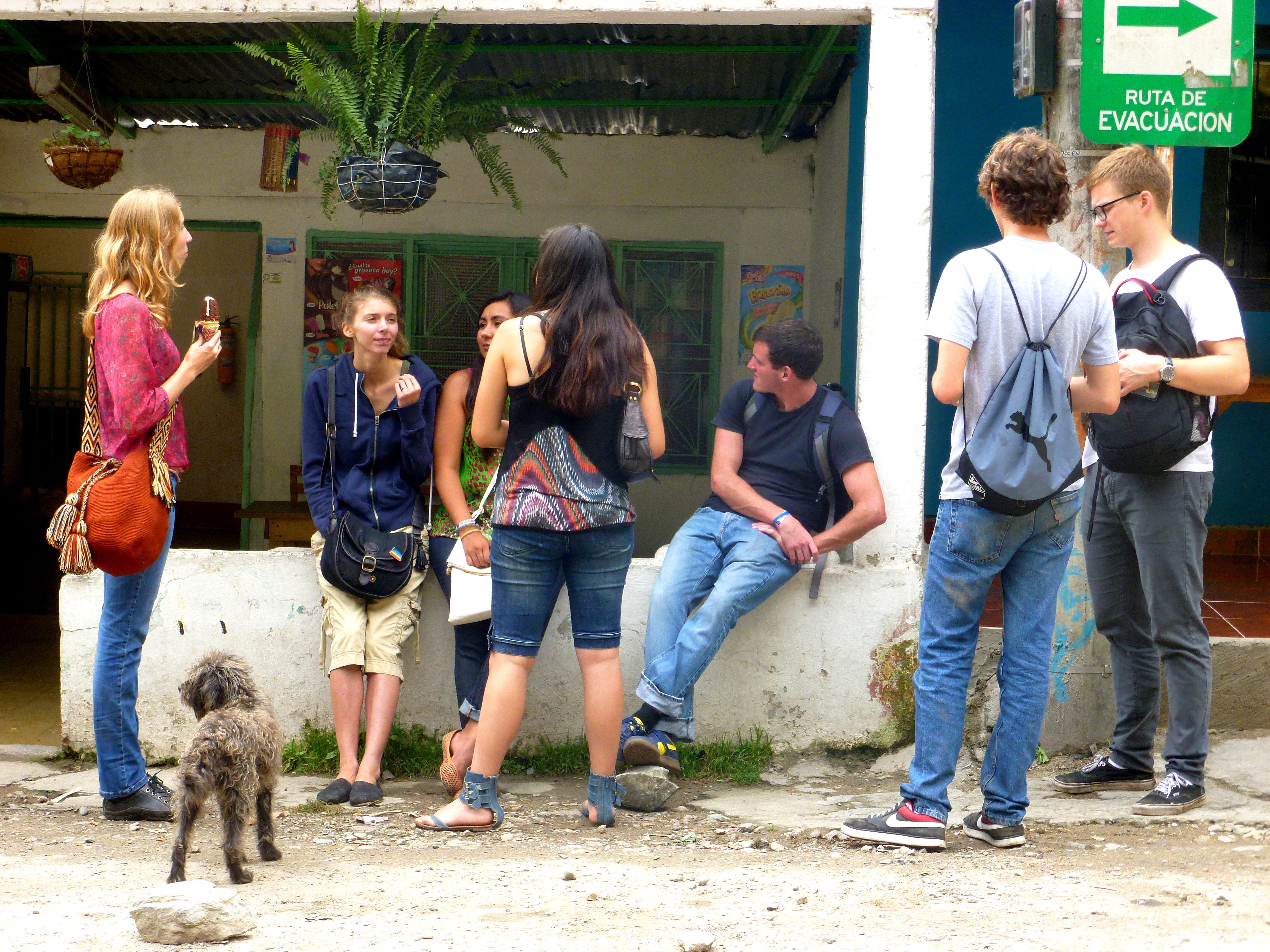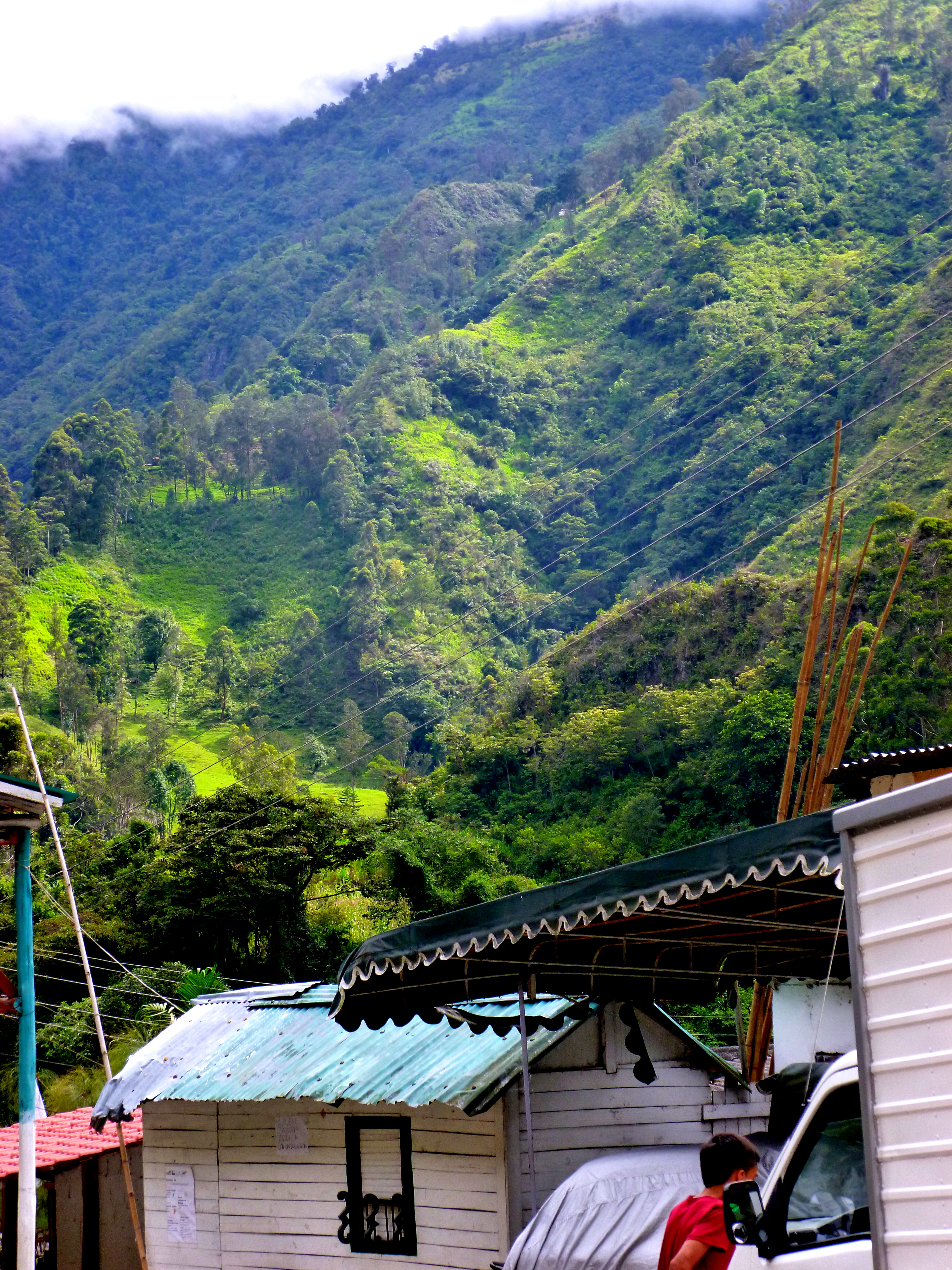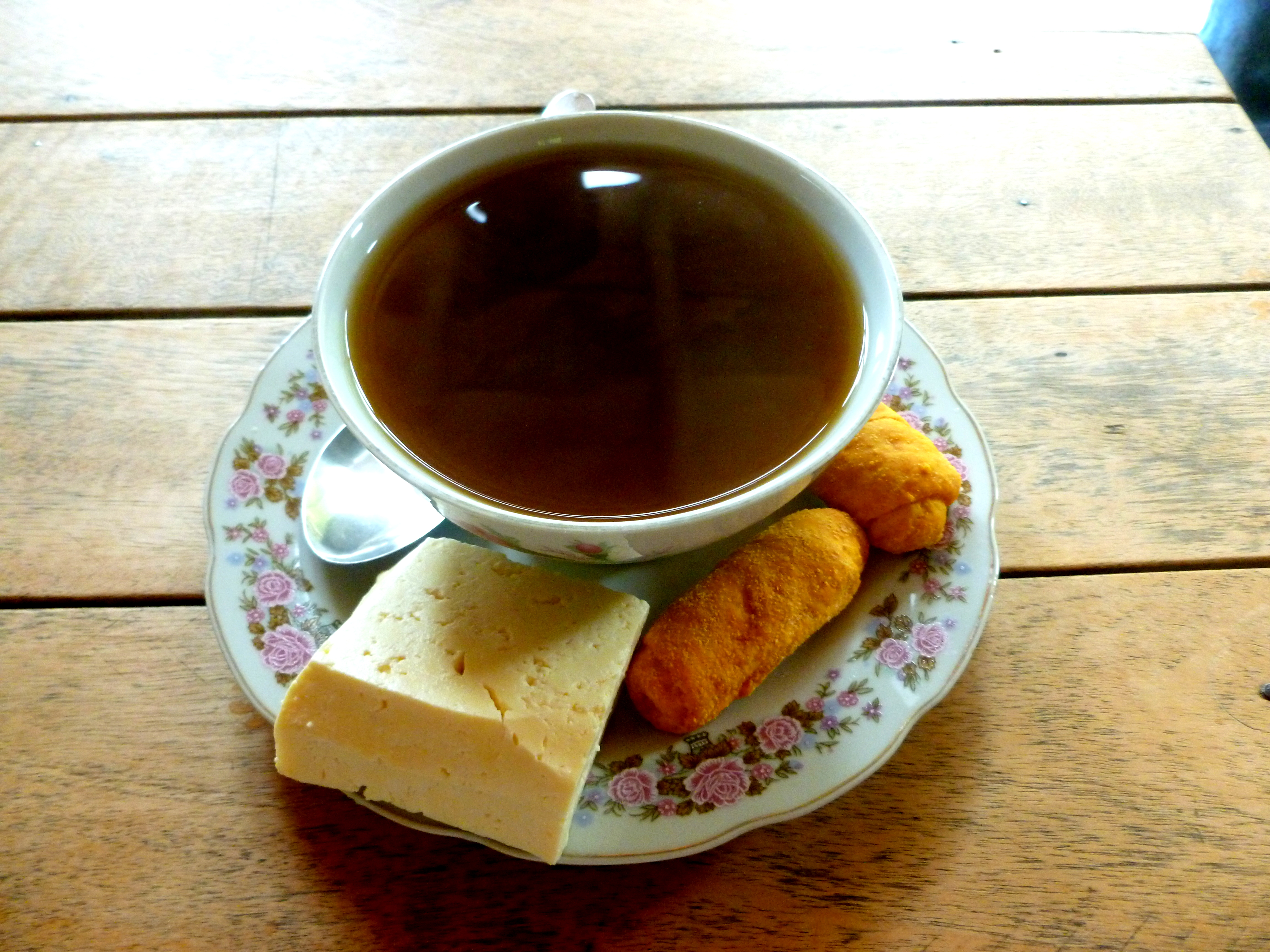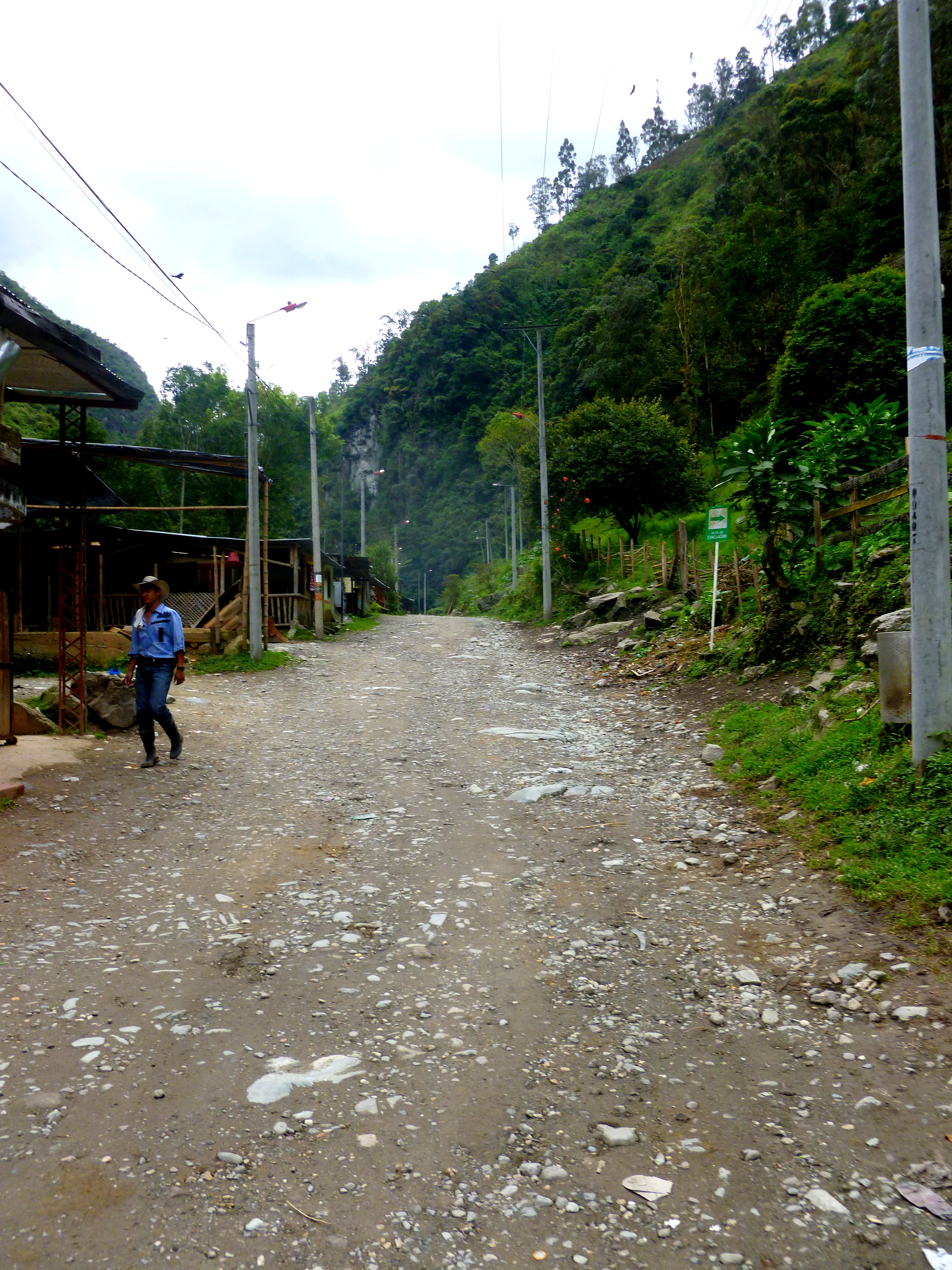 We walked up this road until we stopped at a small restaurant (that doubled as a house) and tried aguapanela. It’s a cane-sugar water in which you submerge slices of cheese. After these have melted, you eat the cheese and drink the water. It’s quite good and perfect for a mountainous area which becomes chilly- and reminds me almost of the butter-tea that is common in the areas of Nepal and the surrounding Himalayas.