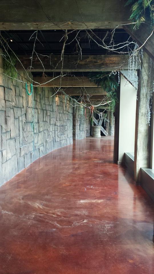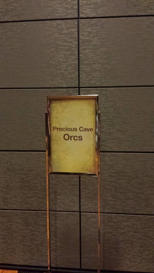 Which is part of a larger complex that is still under construction. We enter into an ice-themed hallway with rooms that are named after Ice Age characters. After that we walked through the Bat Cave, a blacked-out hallway with toy bats attached to the ceiling that chirped at you! From this hallway you emerge into a Lord of the Rings themed hallway (and by hallway I mean 30 foot ceilings and 20-foot-wide floor) to which are attached multiple rooms full of computers for group-think. These rooms are named after LOTR races (Orcs, Elves, Hobbits, Wizards, etc.) There is also a Gollum-sized statue of Gollum (Or Smeagol, whichever you prefer).