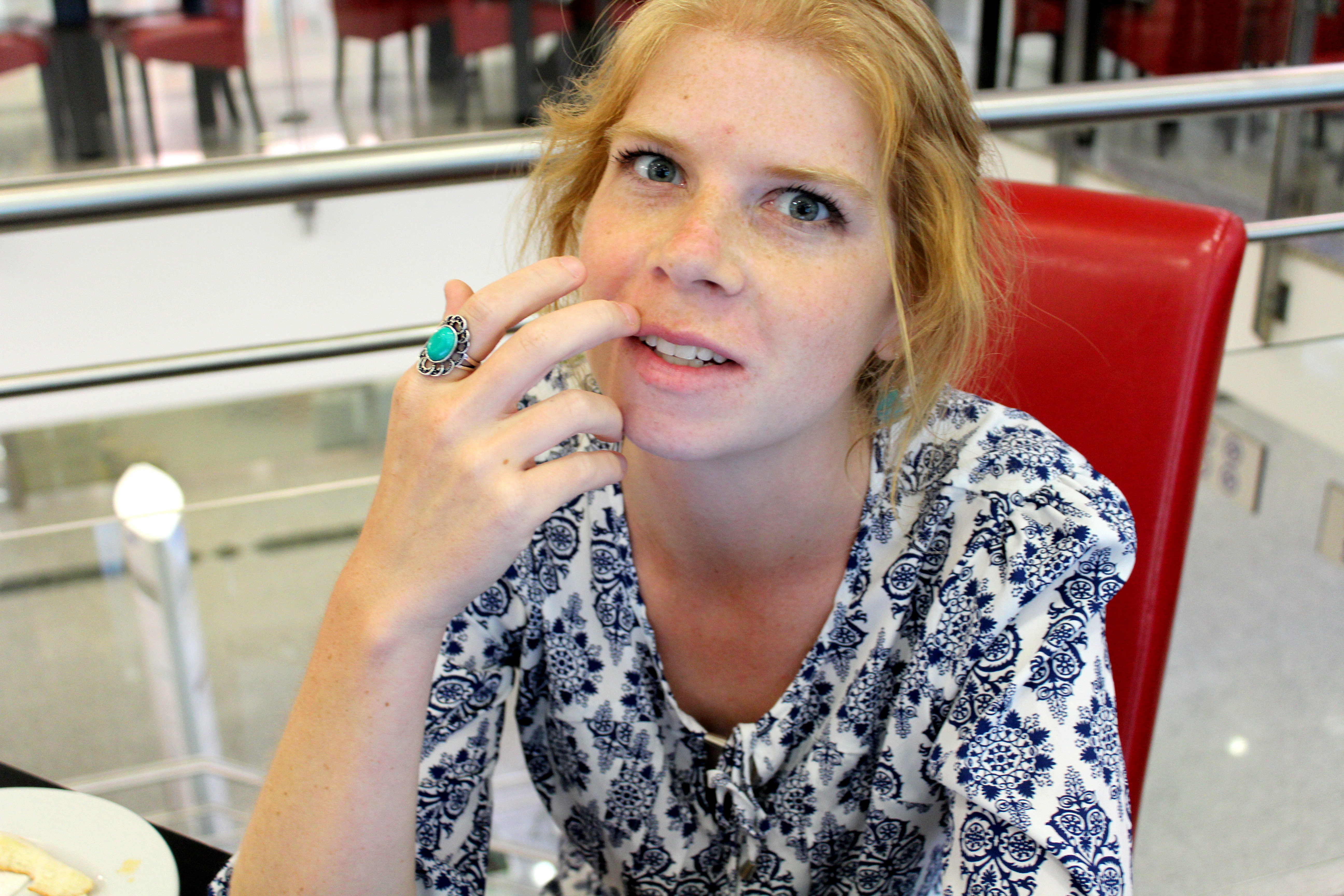 Afterwards it was off to classes (Monday is Balkan History). This is my series of faces when I realize Arnela has my camera: