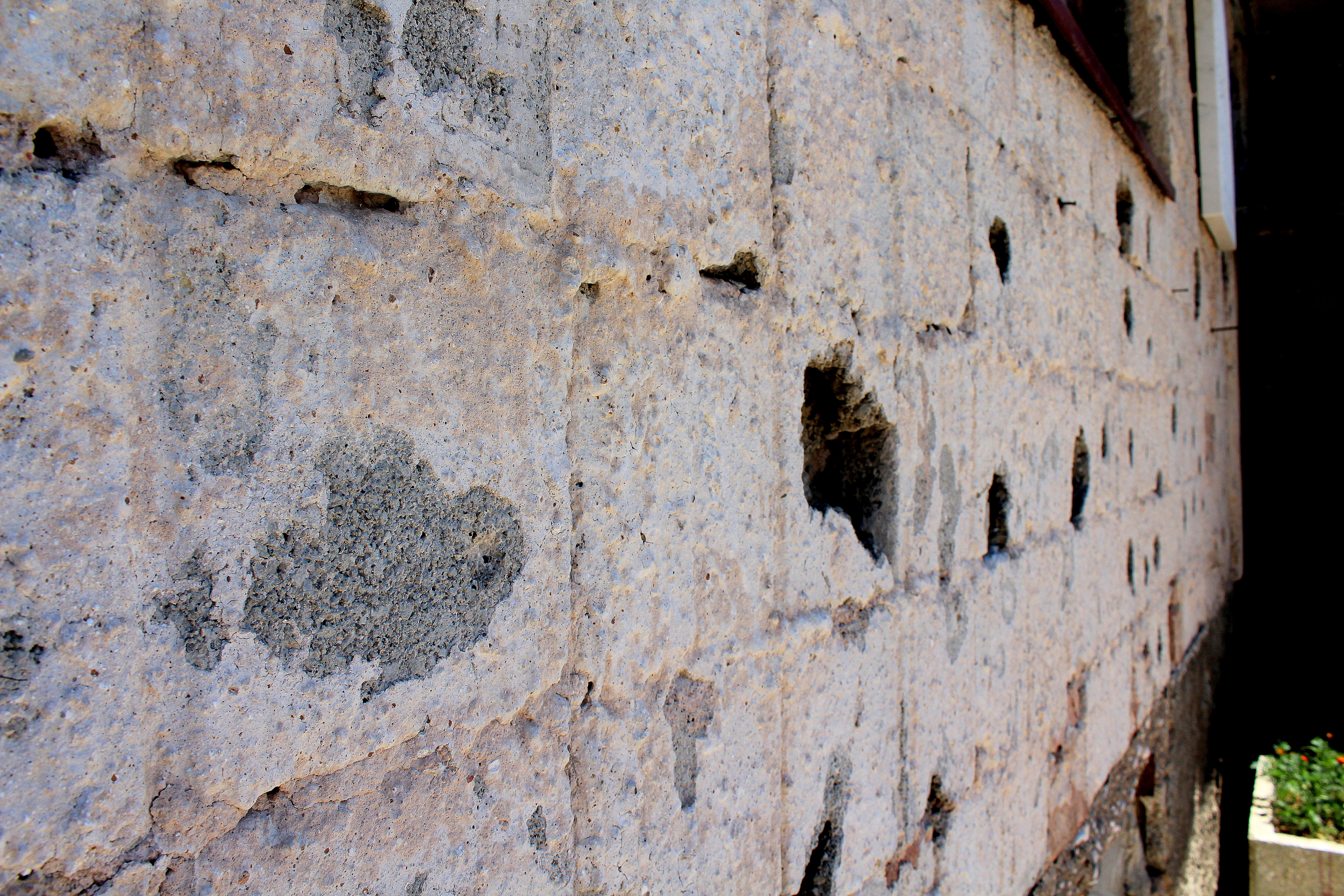 Even this far outside of the city, there are Sarajevo roses that fill the shrapnel indentations and represent places people died.