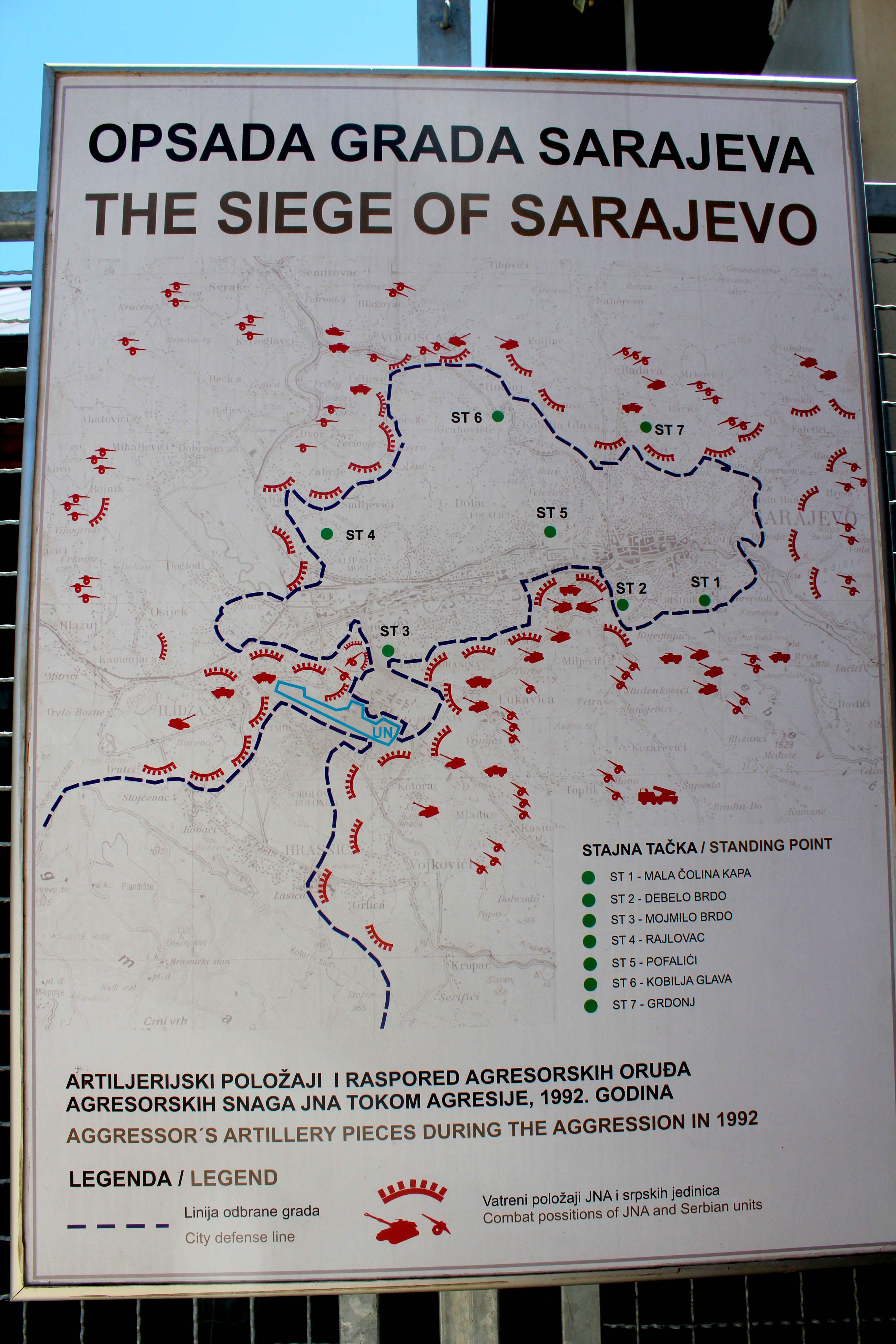The red dots below represent the Serbian locations during the siege.